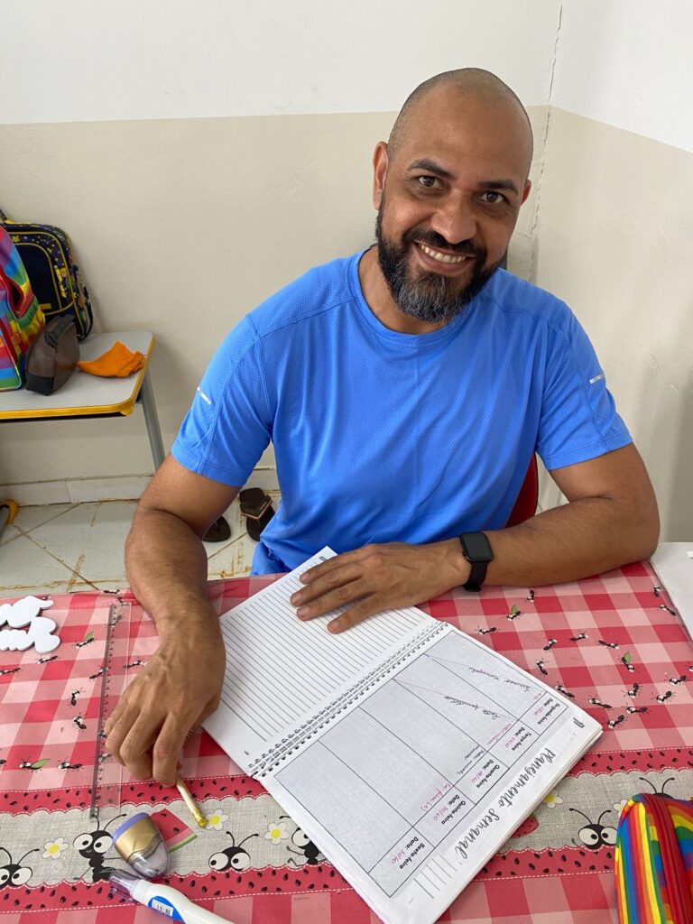 Para Antônio Marcos Nonato de Araújo, professor há 16 anos na E.M.R. Recanto das Palmeiras, a profissão vai muito além do ensino de conteúdos. “Ser professor é muito mais do que exercer uma profissão, é viver uma missão”, define. Atuando com turmas do 1º ano e da Educação Infantil, ele afirma que o desejo de transformar vidas o levou à docência. “A sala de aula é um espaço de descobertas, onde cada olhar curioso e cada conquista dos alunos renovam diariamente o sentido do meu trabalho.”