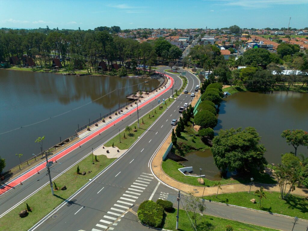 O deck agora é feito em madeira plástica, material sustentável, resistente e de alta durabilidade. A estrutura recebeu um novo píer, guarda-corpo reforçado, bancos e um sistema de contenção de solo para proteger a margem do lago. A calçada ao redor também foi totalmente reformada e passou a contar com acessibilidade, ampliando a circulação e garantindo que mais pessoas possam usufruir do local.