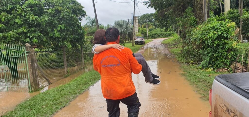 As equipes do órgão municipal estão mobilizadas para prestar apoio às famílias da região afetada. O atendimento inclui o uso de barcos para transporte de moradores e suporte em áreas alagadas.