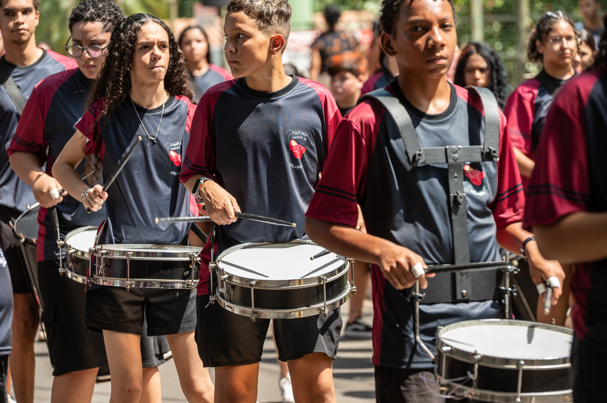 A fanfarra de Holambra também teve destaque no desfile, especialmente por celebrar seus 25 anos de história. A maestrina Brenda de Souza destacou o caráter especial da apresentação. “Este ano é mais especial devido ao aniversário de 25 anos da fanfarra. Convidamos antigos integrantes para participar, então há pais e filhos tocando juntos. Hoje estamos com cerca de 50 a 60 integrantes na avenida.”