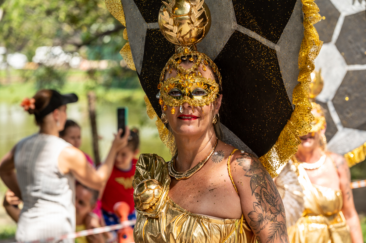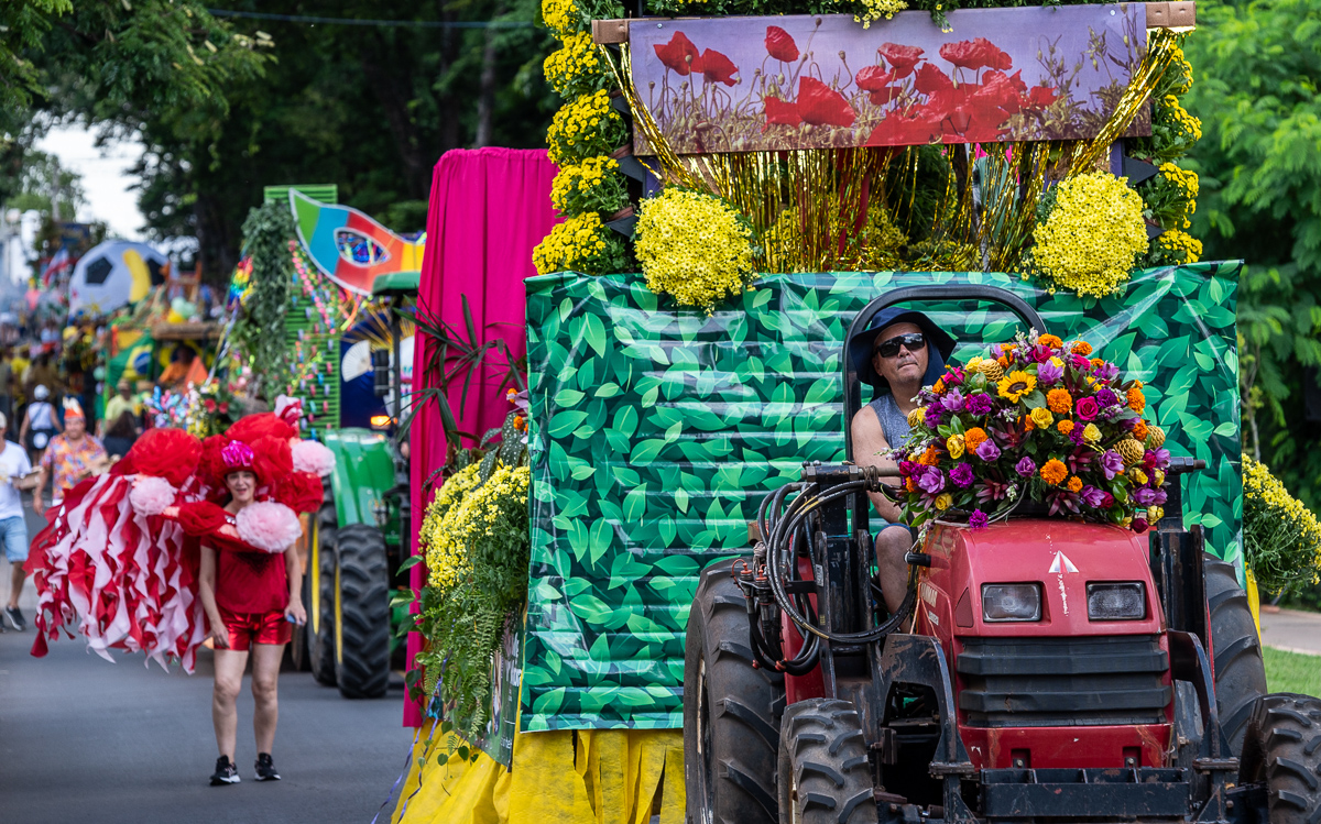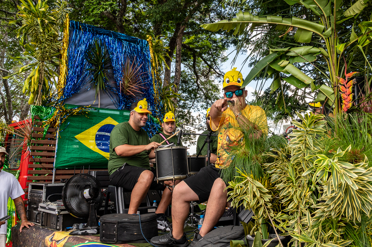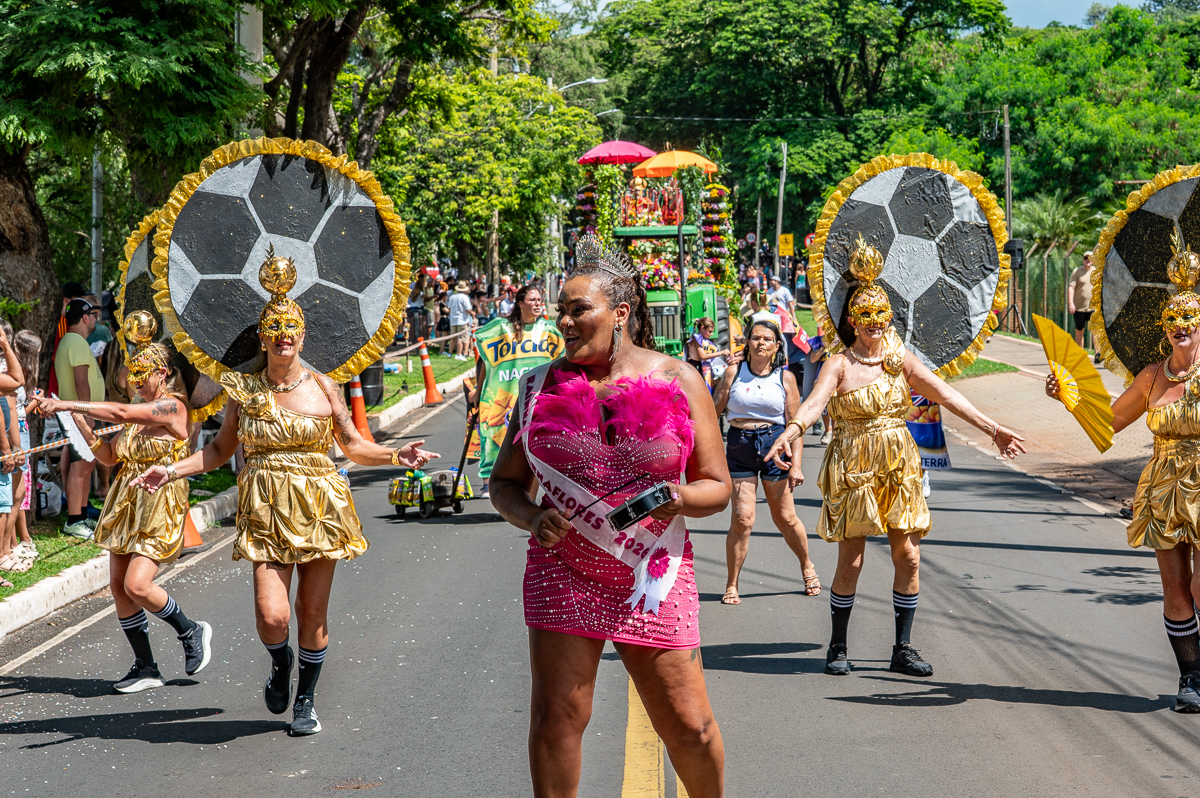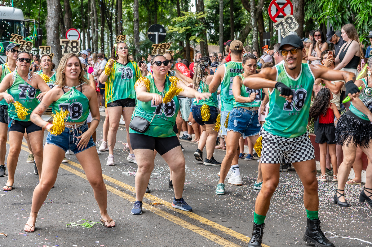 A criatividade dos blocos foi outro ponto alto da noite. Maritha Domhof, integrante de um dos grupos, explicou que a proposta foi fugir do convencional. “A gente inventa, participa, é muito legal. Pensamos fora da caixinha e estamos desfilando como torcida de salgadinho, representando sabores do mundo inteiro.” Frequentadora assídua do evento, ela destacou o caráter singular da festa local. “Desfilo todo ano. O desfile de Holambra é muito característico, porque simboliza muitas coisas e valoriza a família.”